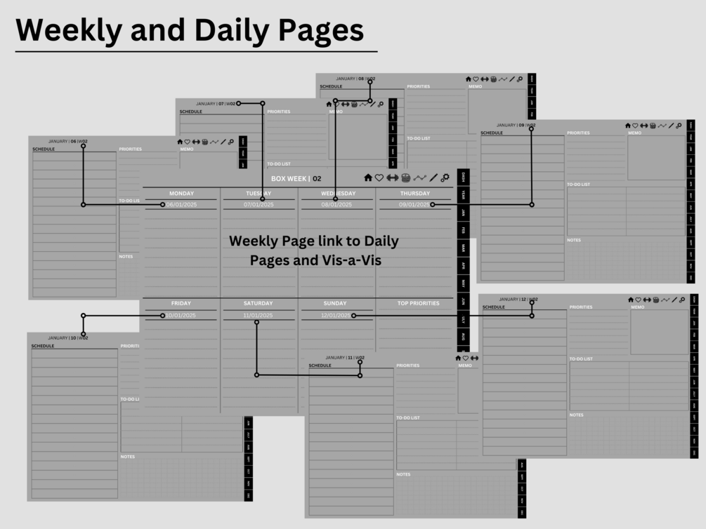 ✔ Weekly overview pages with hyperlinks and 2 different layout styles