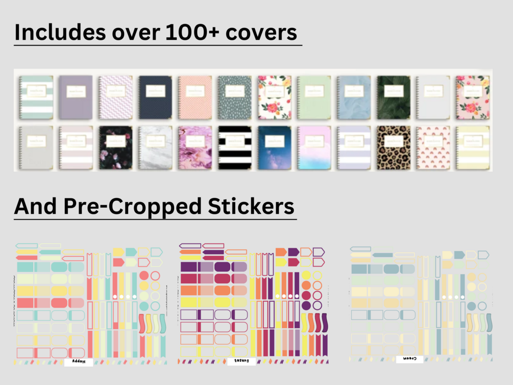 You'll will get- Modern Digital Planner Black (2024+2025+Undated), 100+ Covers, Pre- Cropped Sticker Packs for the Digital Planner